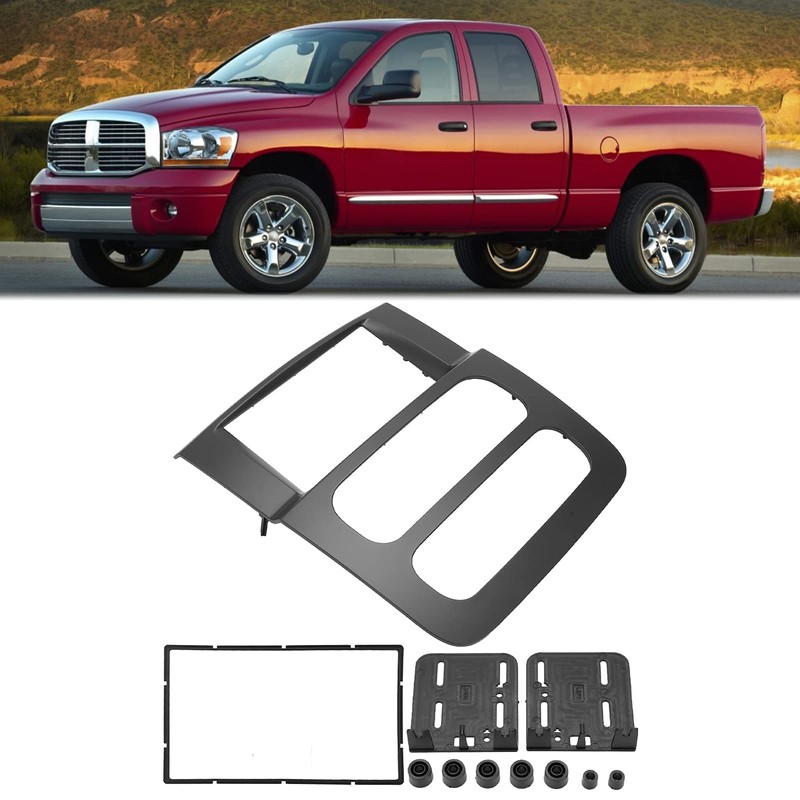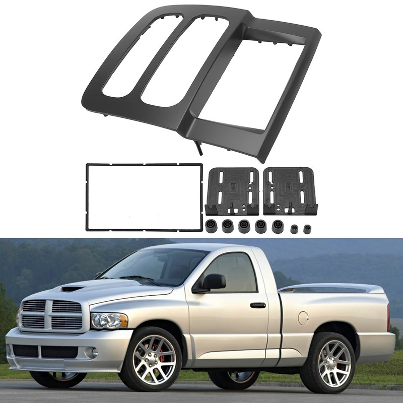 Aramox Stereo Bezel Fit For Ram Truck 2002-2005, 2DIN Car Radio Stereo Fascia Frame Dash CD Panel Trim Reemplazo, Kit de instalación de bisel negro para navegación estéreo de doble radio