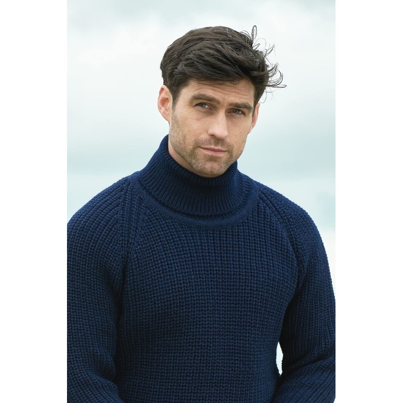 • EXCEPTIONALLY WARM: This stylish submariner rib roll neck sweater is knit using a traditional rib stitch in a large stitch pattern. Made from 100% pure wool, this garment is exceptionally warm, ideal for cold, windy weather. Irish knitwear from Aran Crafts is designed and created using traditional Aran stitches to bring you authentic Irish clothing for any occasion.
