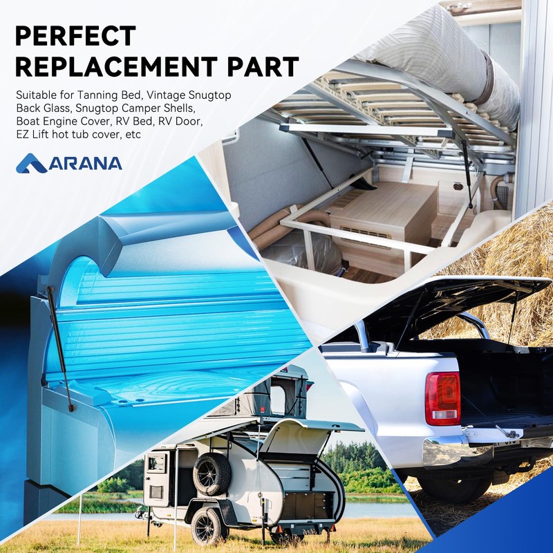 - [ The Choice of Heavy Load Capacity ] - ARANA 20 inch 150lb struts are widely used on the heavy duty RV bed, murphy bed, garbage box, generator house, trap door, floor hatch door, custom-built window, RV kitchen door, tonneau cover etc, as long as the lid weight is between 130-165 pounds