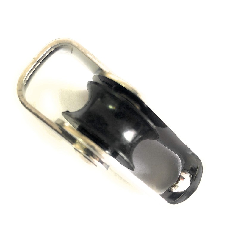 - High-quality block made of stainless steel AISI304 with plastic roller, bracket and plain bearing. Suitable for ropes with a thickness of up to 10 mm, roll diameter: 20 mm, length block: 35 mm, total length with shackle: 50 mm, width block: 22 mm, diameter bore hole: 5 mm, breaking load: 500 kg