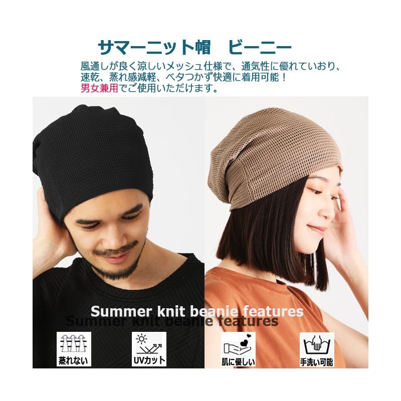 (Thin and Soft Material Summer Knit Hat) Useful not only in summer, but also in spring when the temperature rises and early autumn seasons where the temperature rises and is still hot. The knitted method provides excellent moisture and breathability, making it quick drying, reducing stuffiness, and keeping your skin clean. It also has an antibacterial and deodorizing effect, so you don't have to worry about sweat or stuffy odor. It is soft and light enough to hug your head for a stress-free fit. Basic yet sophisticated silhouette that is easy to use regardless of age or gender. Available in a variety of colors to coordinate with style. Recommended for a variety of occasions, such as going out for a short day or commuting to work, traveling, cycling, sports, and outdoor activities.