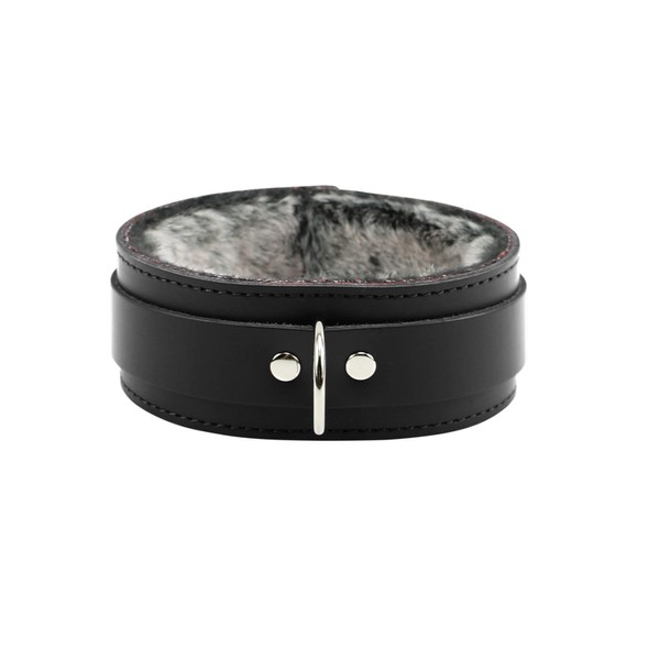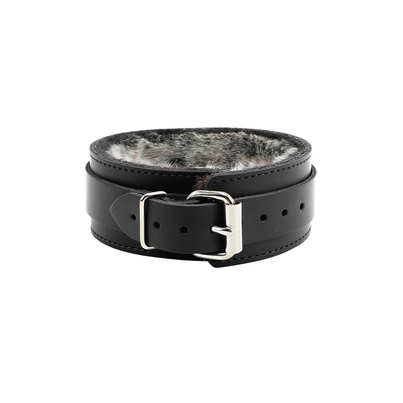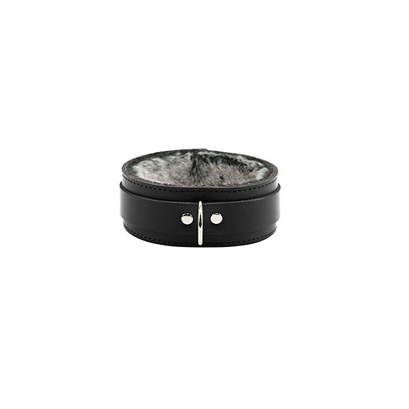 Arcadia Collar Handmade Premium Latigo Leather Luxurious Fur Choker (Real Black, Large)