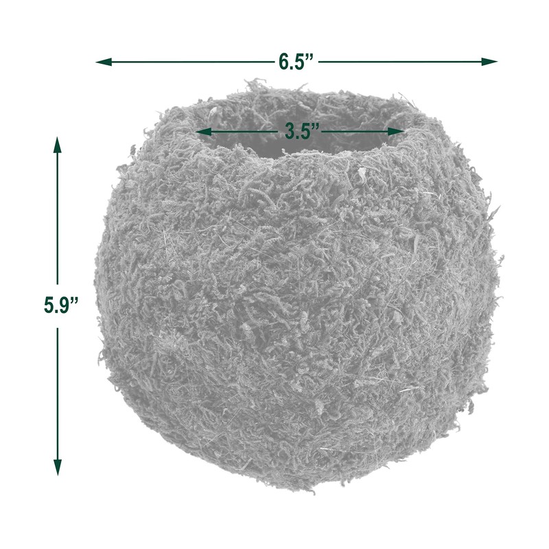- MAINTAINS SHAPE: A sturdy wire frame forms the sphere on which moss is meticulously wrapped with unobtrusive line. This construction keeps the planter’s shape enabling the globe form to remain durable.
