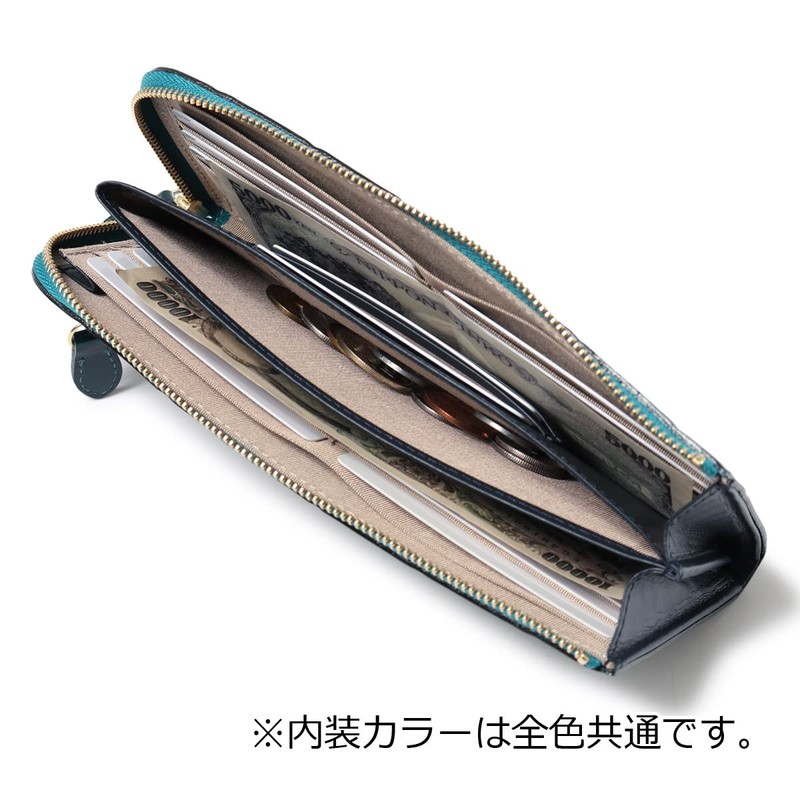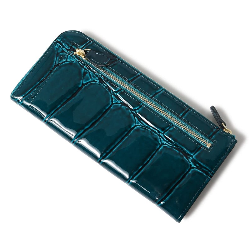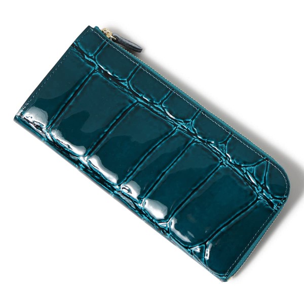 Arcan 1216-632 Long Wallet, L-Shaped Zipper, Genuine Leather, Women's, Tail Crocodile, Made in Japan, Thin, Embossed Crocodile, Cowhide Leather, [65] Blue Green