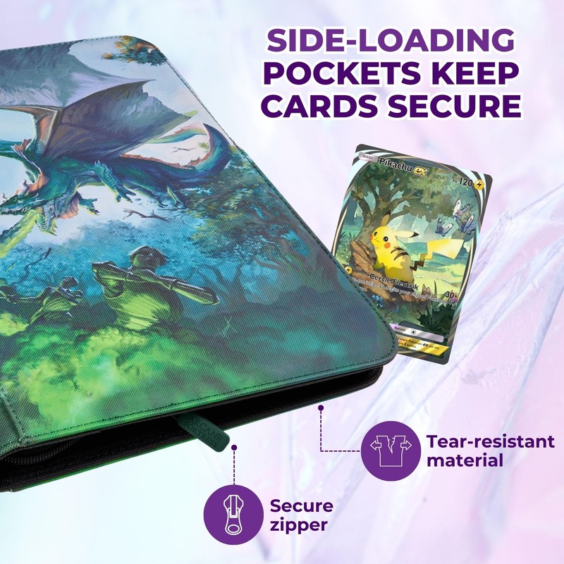 • Secure Zipper Closure for Card Protection: Keep your collection safe with the magic card binder’s zipper closure, protecting cards from dust, spills, and damage. Whether it's for kids' card binders or competitive gameplay, this design ensures your cards stay pristine.