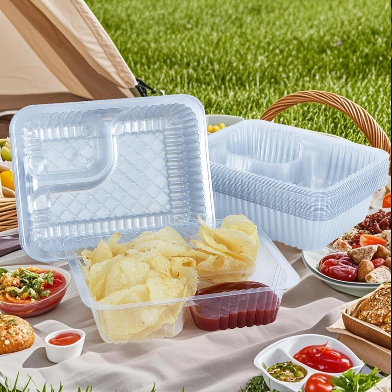 - Plastic trays are suitable for serving chicken nuggets, popcorn, potato chips, cornflakes, french fries, fruit, snacks, biscuits and more. Little compartment can be used to store tomato sauce, salad dressing, chili sauce, seasonings, cheese, sweet and spicy sauce, etc
