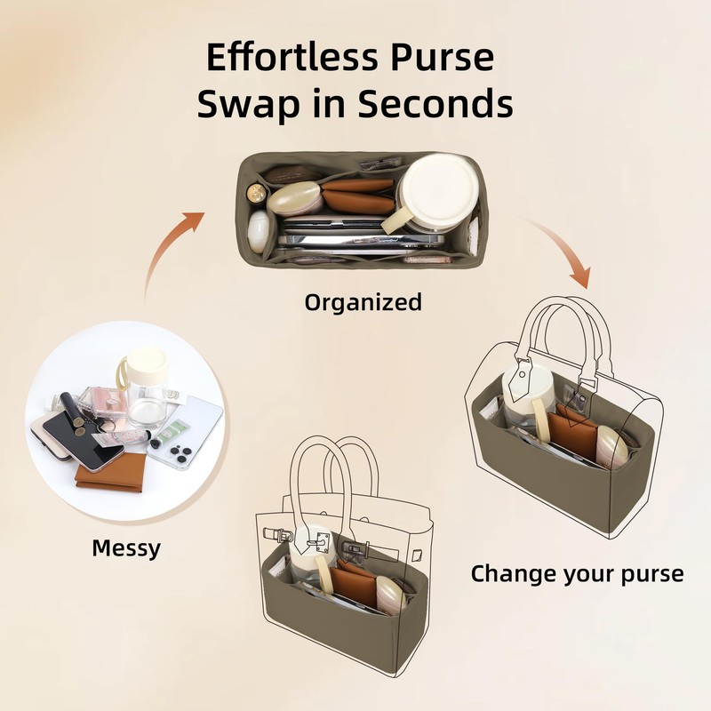 - Efficient Organization, Say Goodbye to Clutter:The multi-functional compartment design of the insert allows you to organize items such as water bottles, cosmetics, phones, wallets, keys, and more, keeping the inside of your luxury bag tidy and well-organized.
