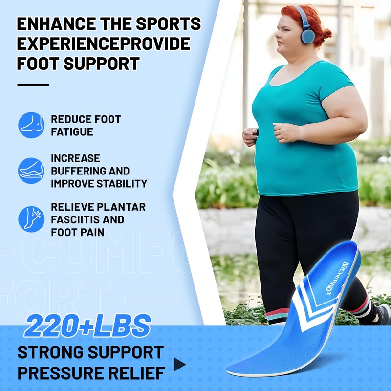 - 3.3 cm arch support: improve gait by providing additional support, reducing pressure on damaged areas and relieving foot pain caused by prolonged standing, flat feet, excessive rotation, plantar fasciitis, Achilles tendinitis, and knee joint injuries