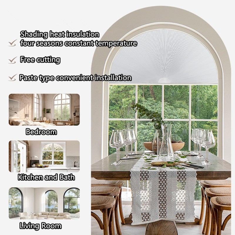- 【Practical Design】Arch Window Pleated Blinds A moon-like shape can be used either as an ornament or as a decoration can filter most of 90% the sun's ultraviolet rays and heat, protecting your privacy. honeycomb structure, can isolate part of the noise, so that you can rest at ease.