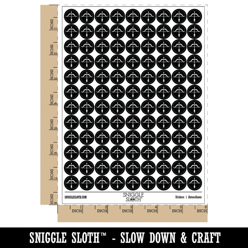 Archery Bow and Arrow 200+ Round Stickers - Gloss Finish - 0.50" Size - Black