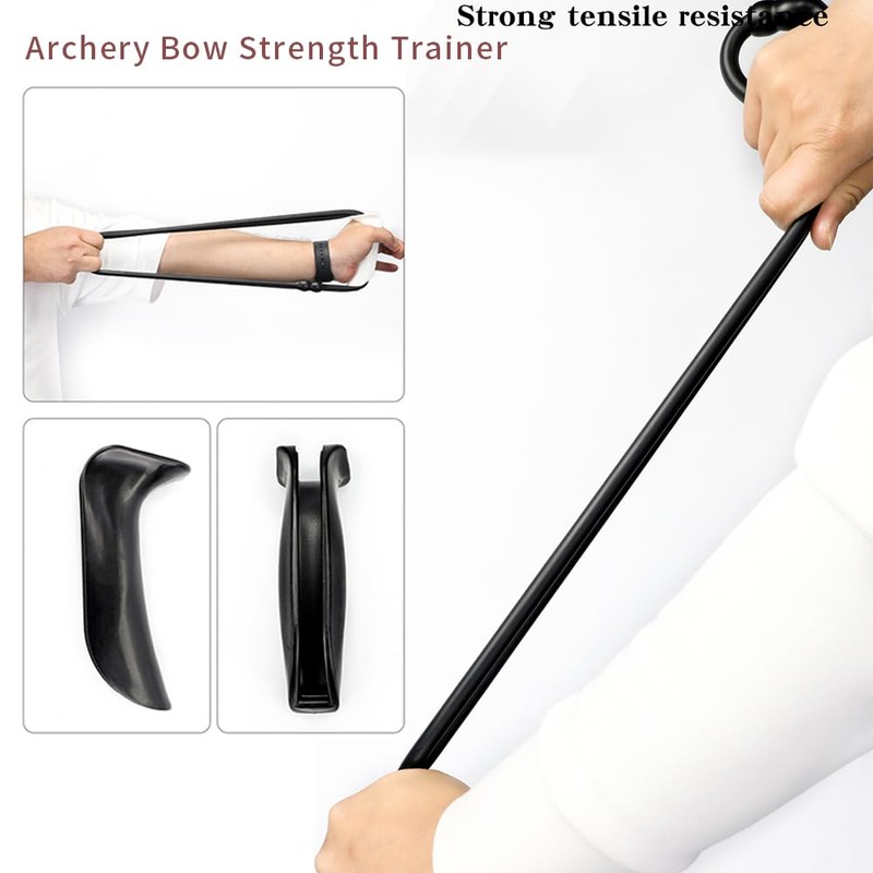 Archery Bow Strength Trainer, Rubber Stretch Bands Puller Strength Training with Ergonomic Grip for Hunting Shooting Practice (Black)