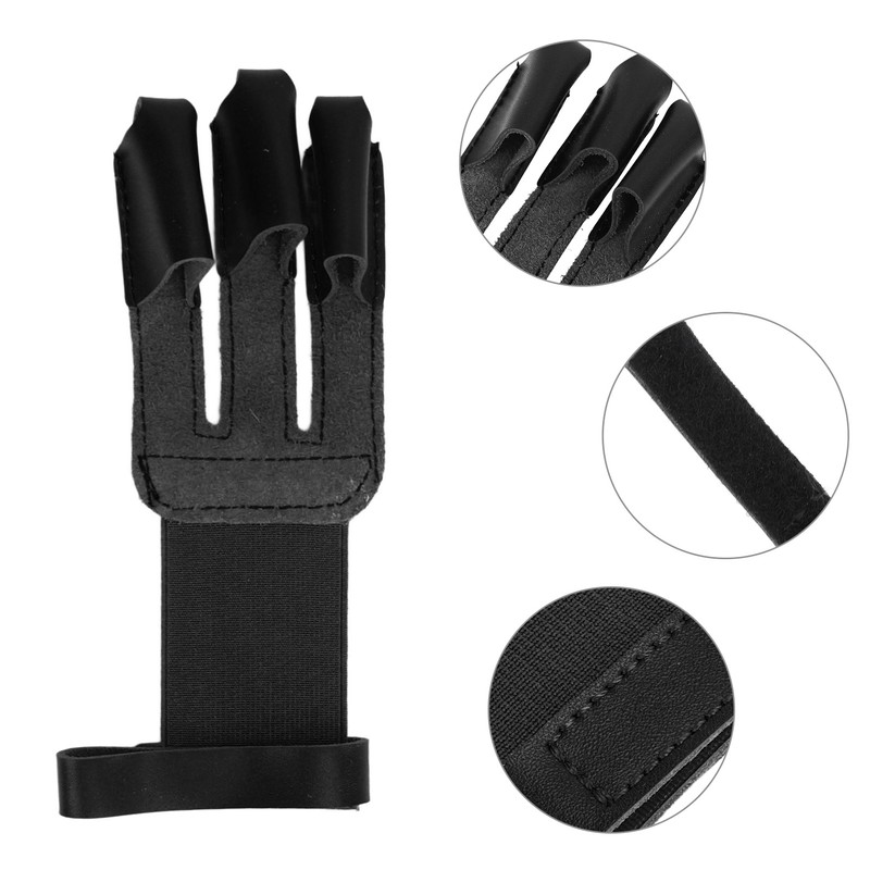 Archery Glove Cowhide Protective 3 Finger Guard Finger Tab Glove for Hunting Shooting Targeting Black
