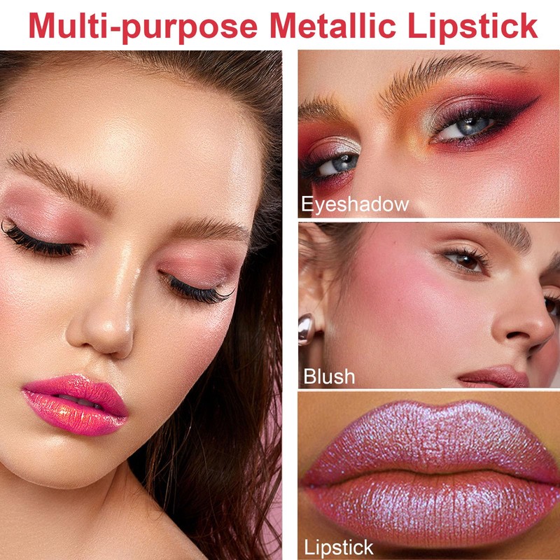 - [Multi-Purpose]: Shiny lipstick lipstick can be applied to the eyelids as eyeshadow, used as blush, or superimposed on matte lipstick to add metallic elements