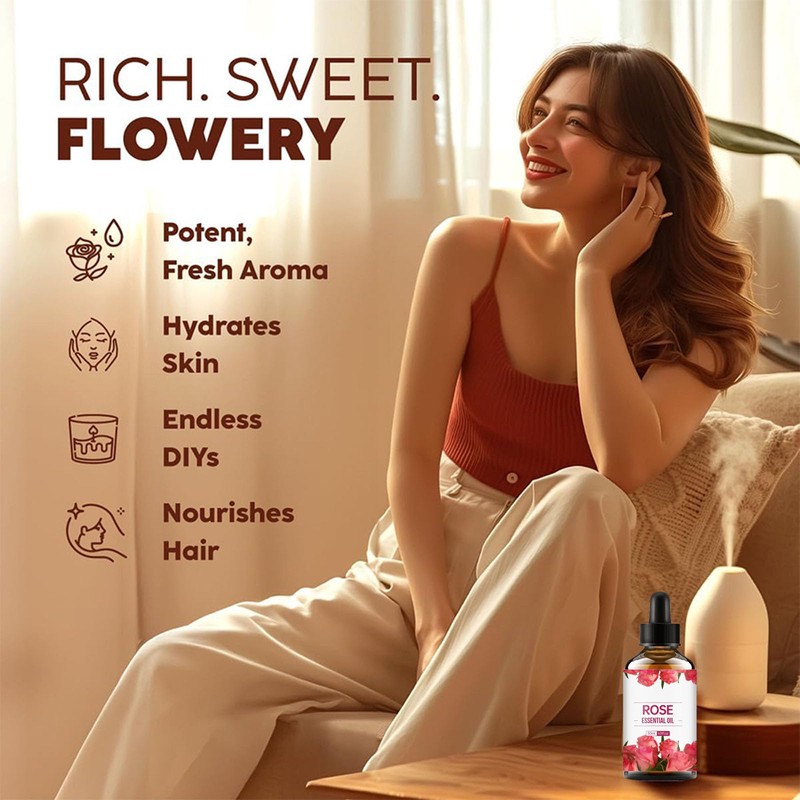 - [Rose Multi Use Oil]: Rose face oil can be added to face cream or masks to enhance skin care effects. Rose essential oil can be used as a hair care essential oil to moisturize the hair. Organic rose oil can be used as a body massage oil to promote blood circulation. Rose essential oil can also be used in aromatherapy to relieve stress