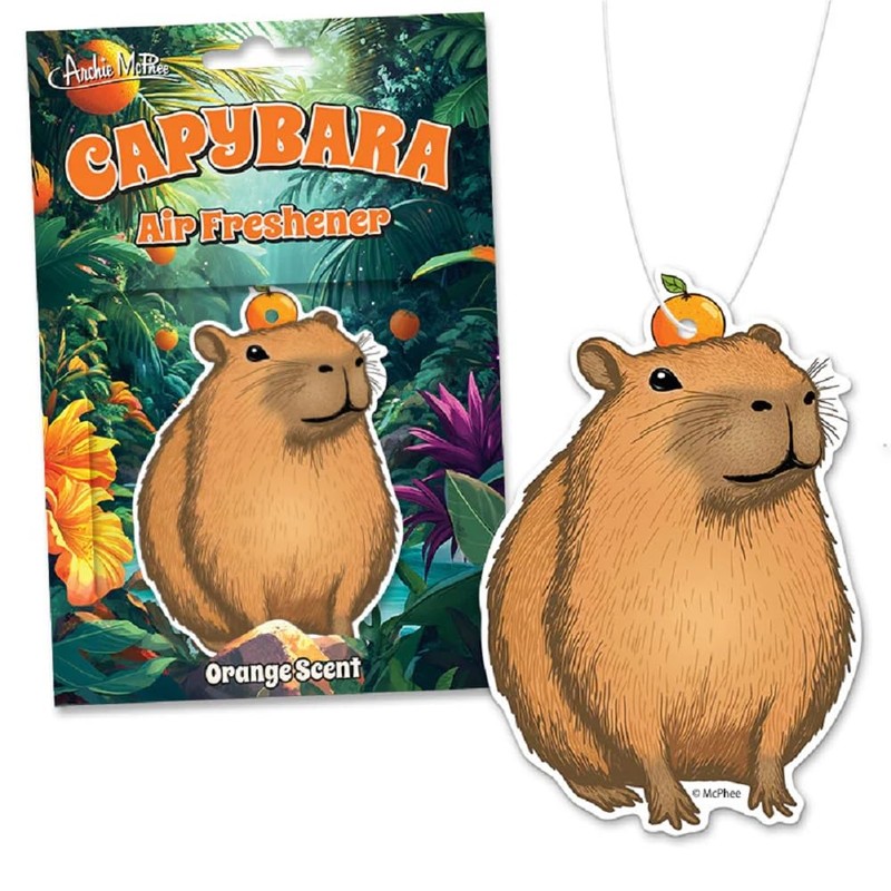 - Having a capybara as your copilot during your commute is pretty dreamy. This 4-1/8" (10.4 cm) tall, heavy cardstock air freshener is relaxed, unexpressive and has an orange on its head. All the things we love about capybaras! This air freshener tells every passenger in your car that you care how your vehicle smells (like oranges), but you’re also completely zen all the time