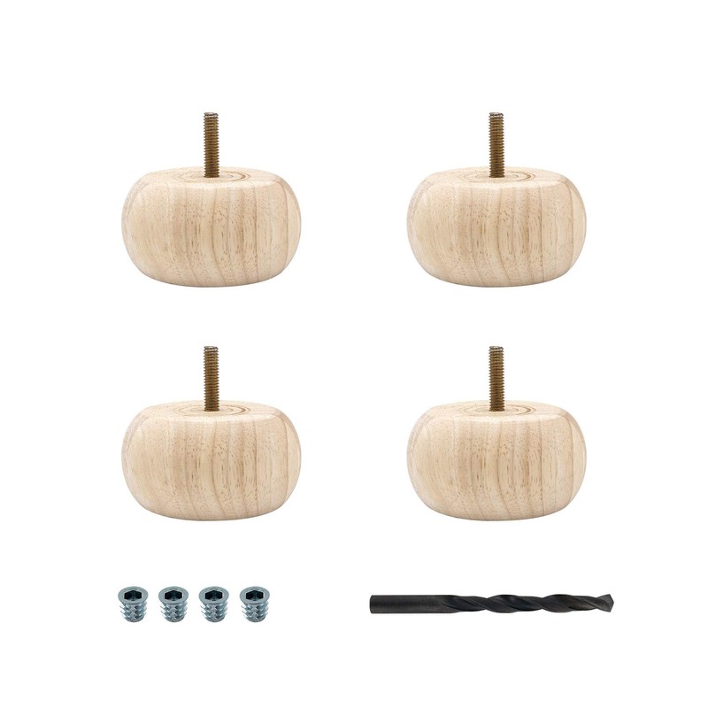 Designer's Edge Millwork Architectural Products by Outwater BUN32-UN 1-7/8 in. x 3-5/8 in. Unfinished Solid Hardwood Round Bun Foot 4 Pack with 4 Free Insert Nuts and Drill Bit