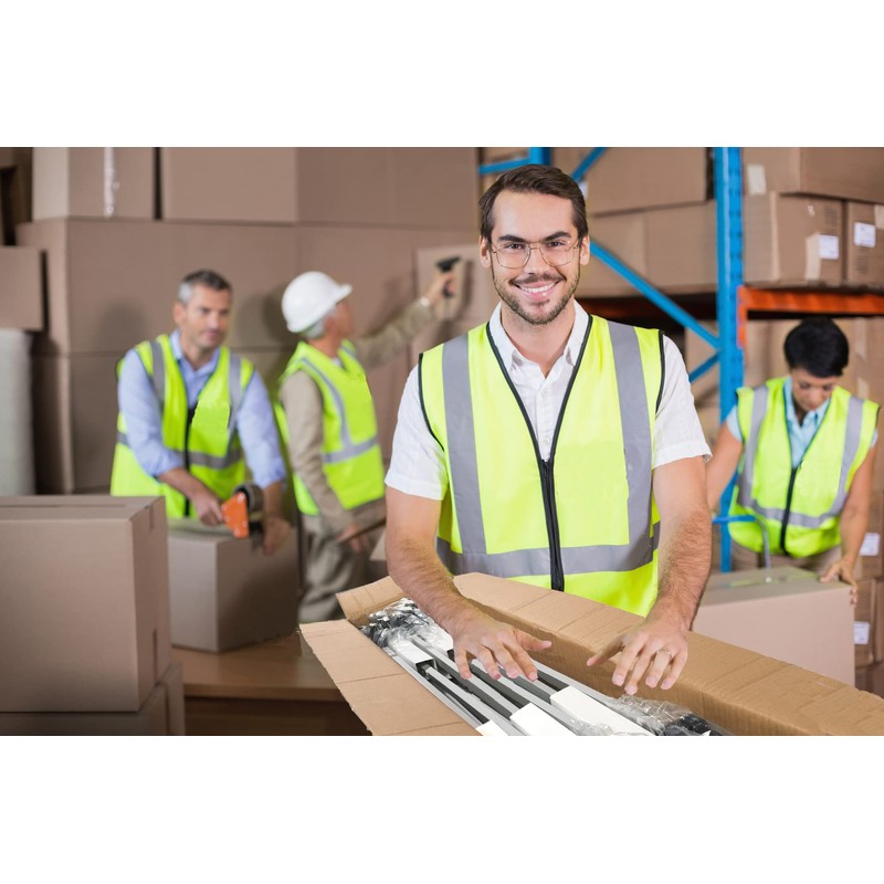 - 2" silver reflective stripe runs horizontally 4" from bottom of florescent vest.