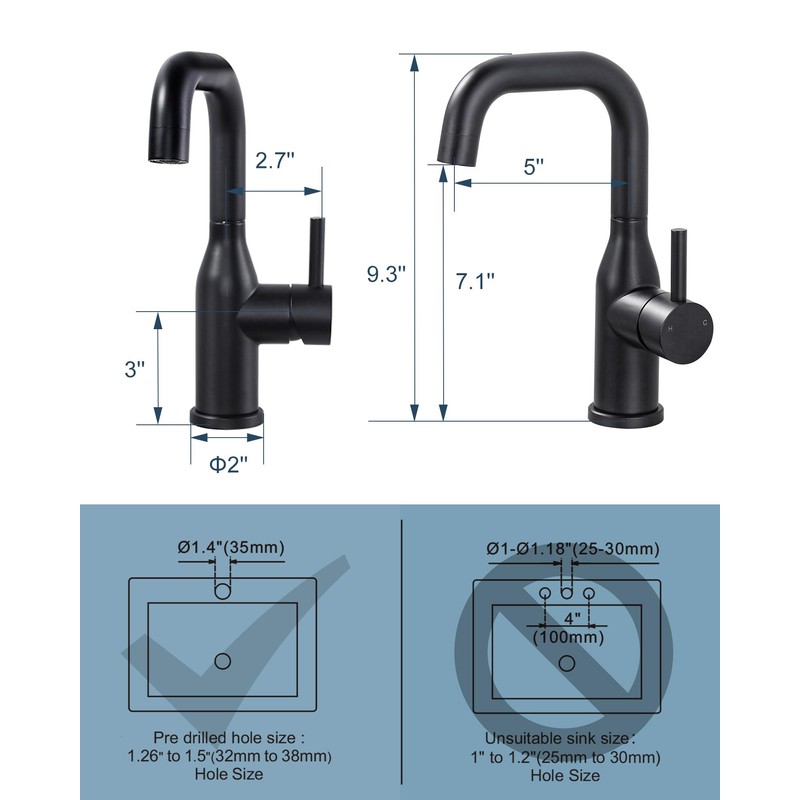 - Single Hole DesignDesigned to fit single hole configurations(hole size: ."- ."). For -hole installation, purchase . inch deck plate BCJLDQT separately. cUPC supply lines are integrated into the faucet for one less leak point and are conveniently included in the box.