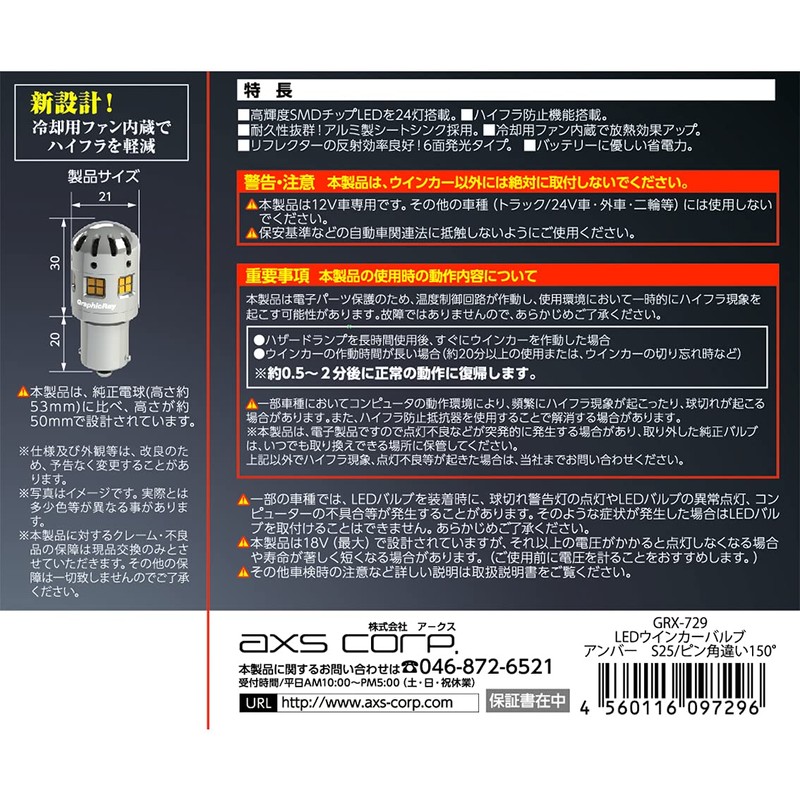 Arcs GRX-729 LED Turn Signal Bulb, S25 Pin Angle, Amber (Orange)