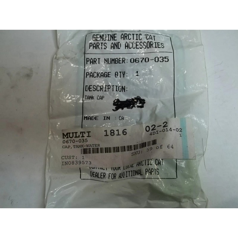 Arctic Cat 0670-035 ARCTIC CAT NOS GREEN COOLANT CAP 1988+