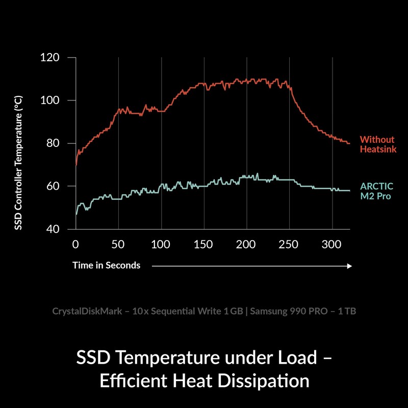 - EFFICIENT HEAT DISSIPATION: Lower SSD heat and faster cooling. Thanks to its additional mass, the ARCTIC M2 Pro effectively dissipates heat and transfers it to the environment