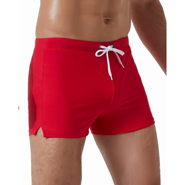 Arcweg Swimming Trunks Mens Swim Trunks with Drawstring Men's Swimwear Quick Dry Swimming Briefs for Men Board Shorts for Beach Swimming Red XL