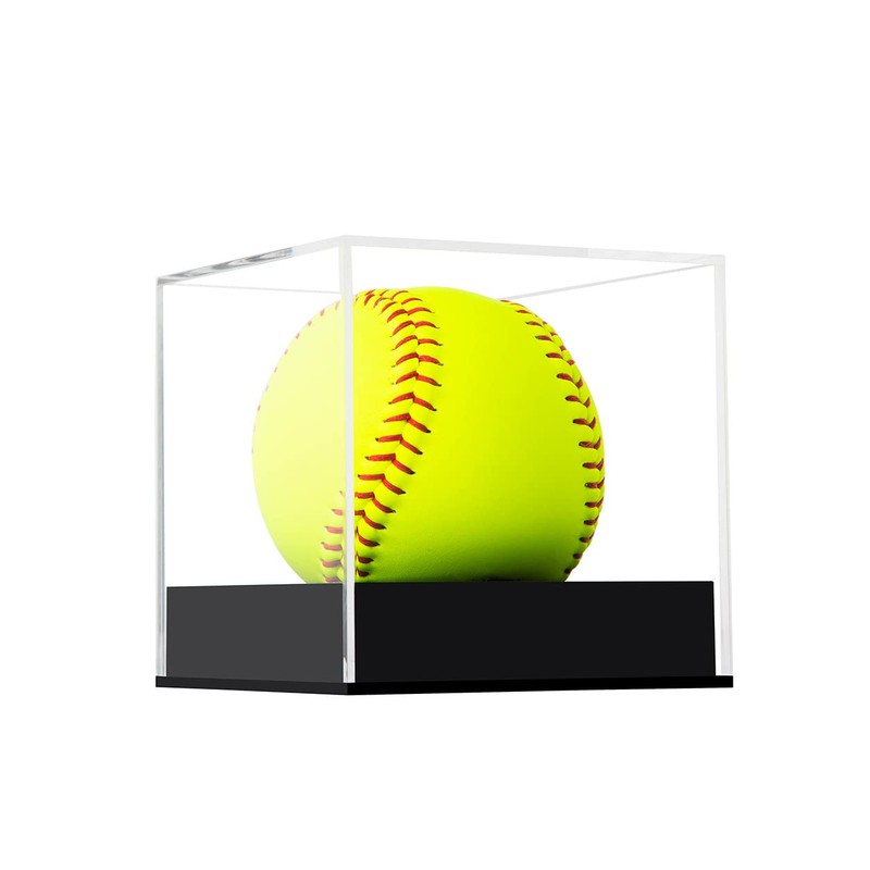 Arcylic Softball Display Case Softball Holder Stand Championship Square Box UV Protected Clear Display Cube for Official 12 Inches Softball Sports Ball Storage Collections