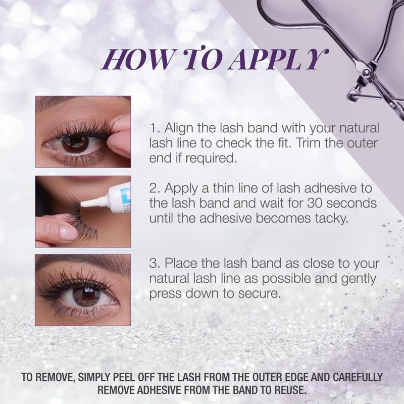 - Comfortable Invisiband: Features an invisible band that connects the hair strands to form a strip that ensures secure corners. Designed for comfortable wear, these falsies allow the lash fibers to blend seamlessly with your own eyelashes - resulting in the most natural finish.
