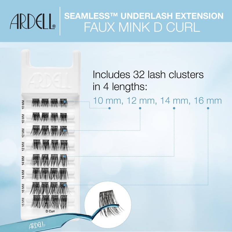 Ardell Seamless Underlash Lash Extensions Kit - DIY Lash Clusters, Faux Mink D-Curl, Natural Look Eyelash Extension, 32 Count, 1-Pack | Ardell