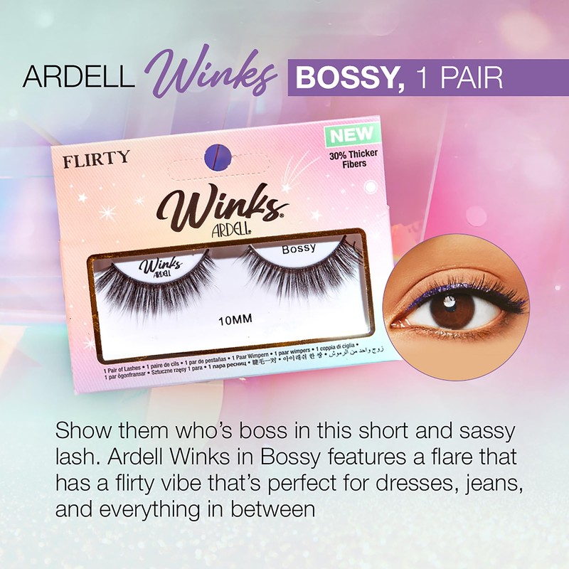 Ardell Winks Bossy Black Lashes, Light Volume, 10mm Flared, Black Band, Customizable Look