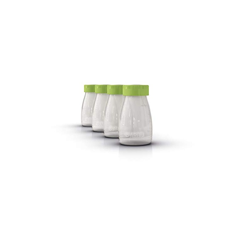 Ardo Breast Milk Storage and Feeding Bottles (4), Swiss Made, 150ml (5 fl.oz.), BPA Free, with Ring and Cap, Standard Width, 4 Bottles