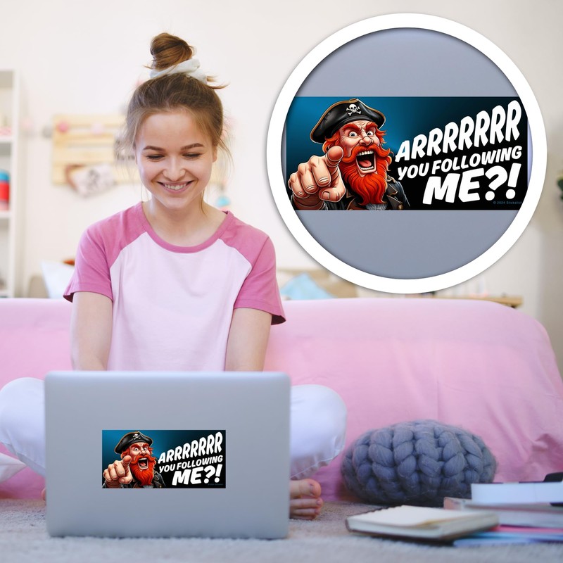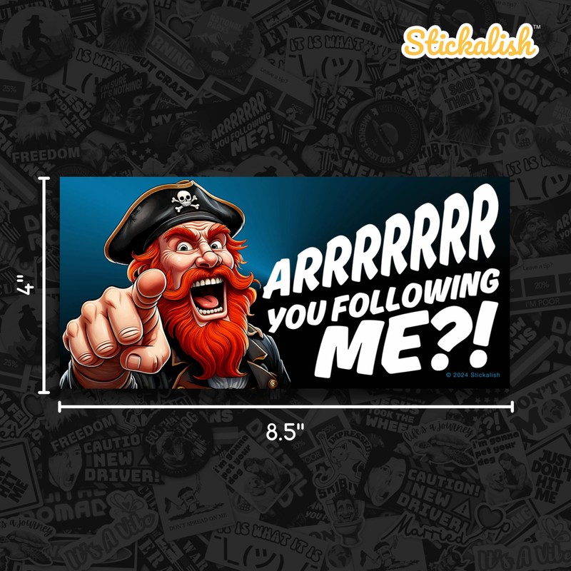Are You Following Me - Cool Funny Accessories Gifts Pranks for Adults Teens Kids. Truck Car Bumper, Boat, Camper, RV, Laptop, Backpack, Luggage, Water Bottle. Must have Pirate Stickers for your stuff!