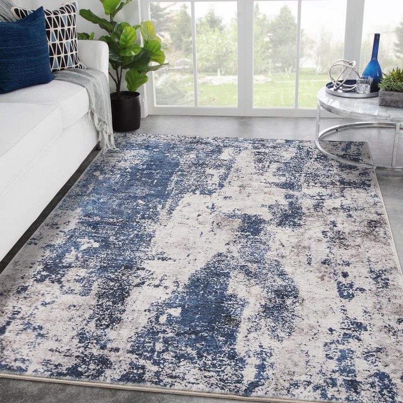 Area Rug Living Room Rugs: 5x7 Large Soft Indoor Carpet Modern Abstract Decor Rug with Non Slip Rubber Backing for Under Dining Table Nursery Home Office Bedroom Blue