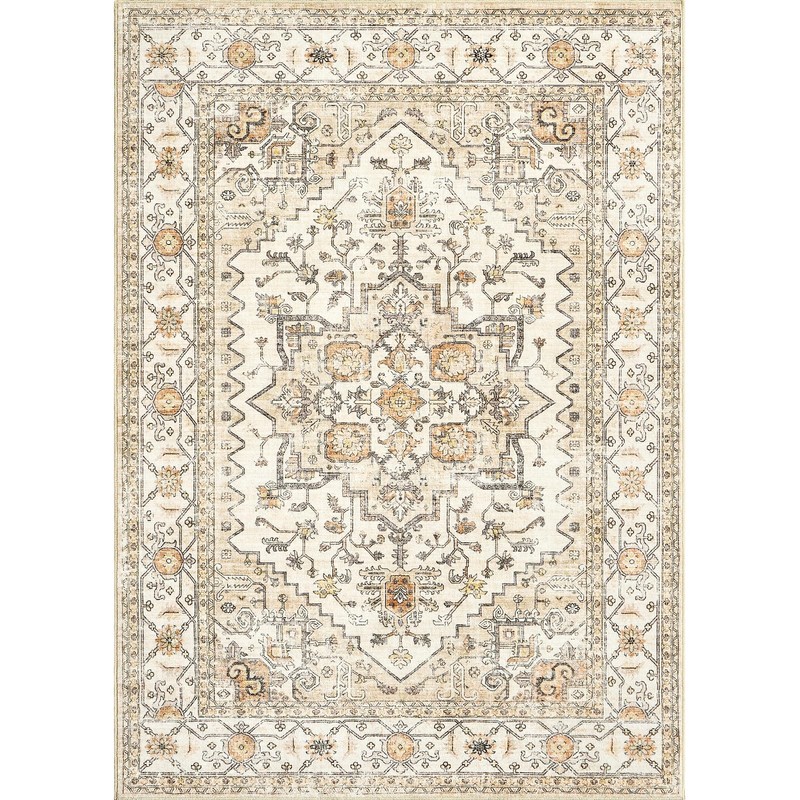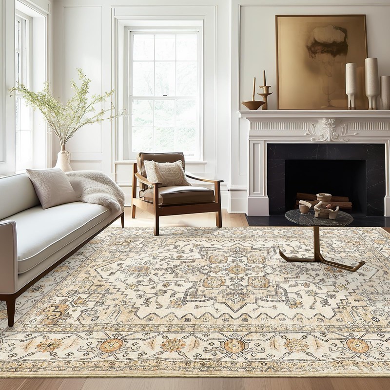 Area Rugs for Living Room - 6x9, Boho Non-Slip Low Pile Carpet Machine Washable Rugs for Bedroom, Farmhouse, Office, Dining Room (Gold)