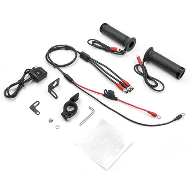 - Lieferumfang: 2 Heizgriffe, Steuereinheit für die Temperaturregelung, 3 verschiedene Halterungen für den wasserfesten Wärmestufenschalter, alle notwendigen Kabel und Montagematerialien