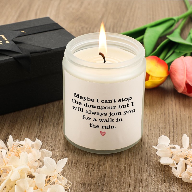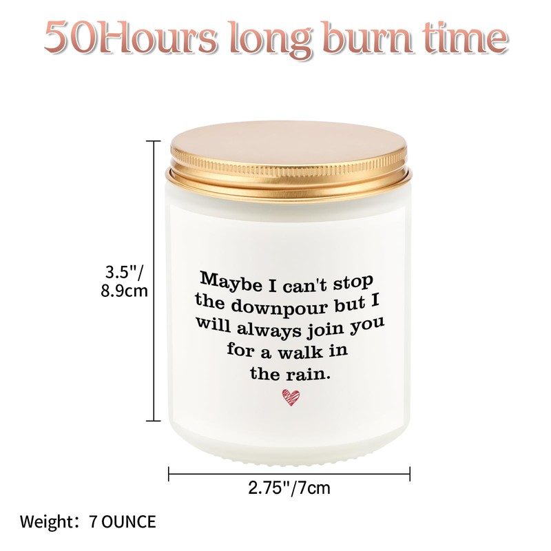 - 【ANNIVERSARY GIFTS FOR COUPLES】The heartfelt message, “Maybe I can’t stop the downpour, but I will always join you for a walk in the rain,” embodies lifelong partnership. Hand-poured with natural lavender soy wax -inspired fragrances, it’s a meaningful keepsake for 10th (tin) or 25th (silver) anniversaries.