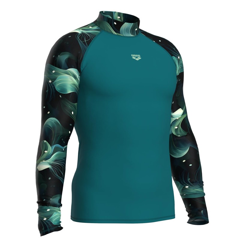 ARENA Men's Vest L/S Allover Rash Guard Shirt, Eden Green-black Multi, S