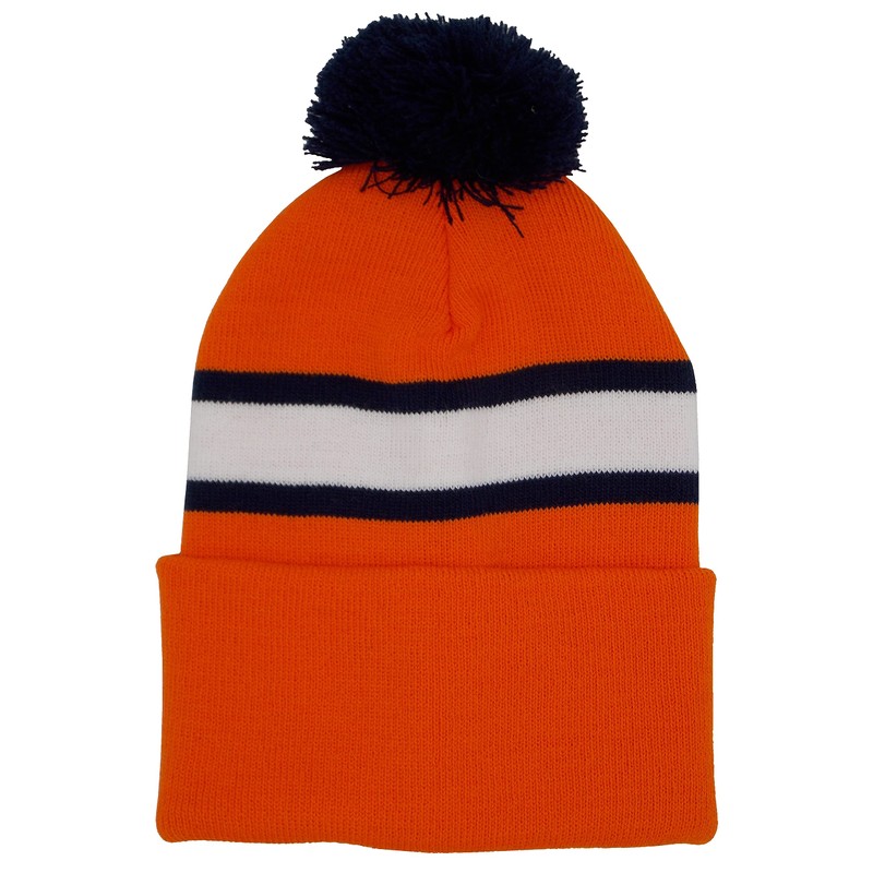 Arena Scarves Luton Town Supporters Tangerine, Navy and White Retro Striped Bobble Hat