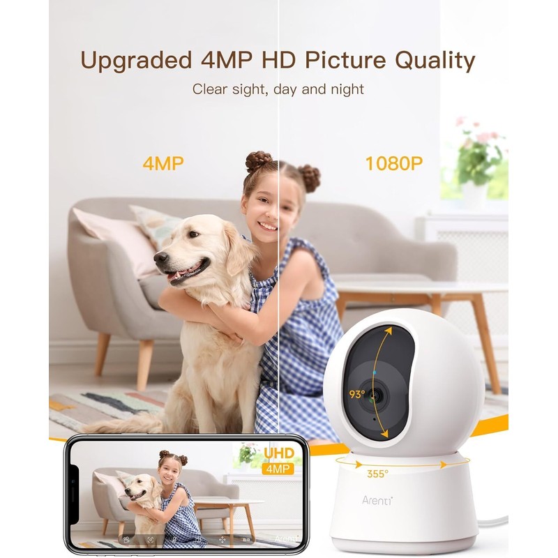 • 1 - 4MP Resolution & Dual WiFi Bands - Arenti pet camera provides 2.5K 4MP ultra clear live stream which allows you to monitor pets, babies or elderly. This WiFi camera works on both 2.4GHz and 5GHz bands to provide stronger signal and faster WiFi connection.