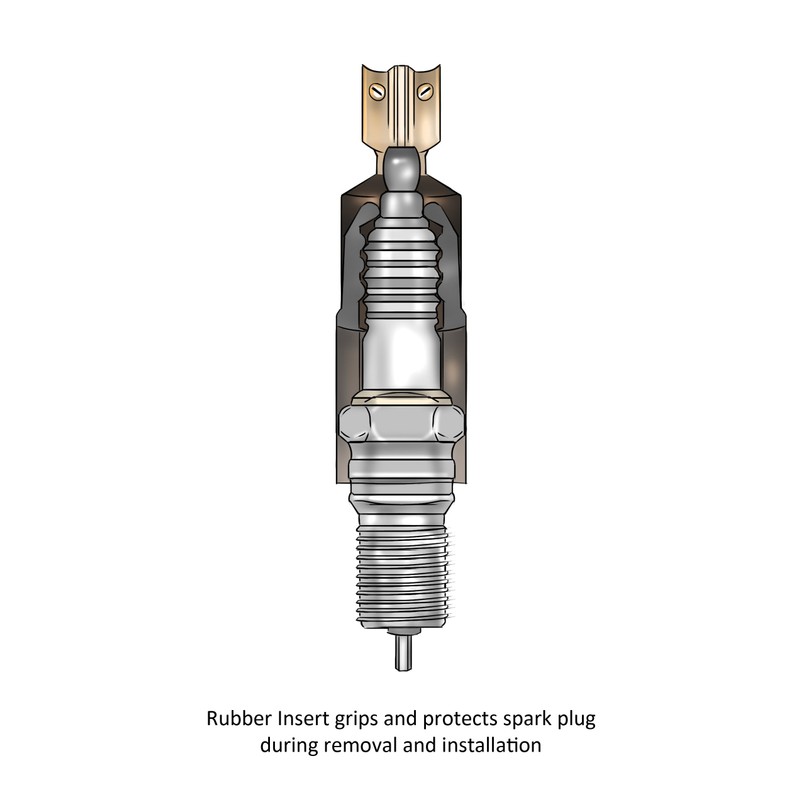 - APPLICATION: This extra-long 6-inch socket offers comprehensive coverage for almost any spark plug socket maintenance. This socket features an internal rubber grommet that securely grips spark plugs during removal and installation, reducing the risk of sockets slipping during work in recessed and hard to reach areas.