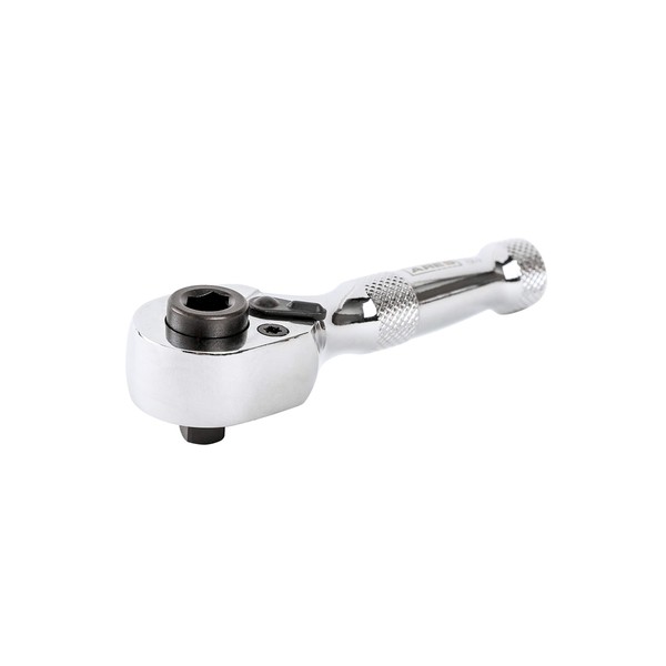 ARES 42041 - 1/4-Inch Drive 72-Tooth Stubby Ratchet and Bit Driver - Premium Chrome Vanadium Steel Construction & Mirror Polish Finish - Reversible Direction Head