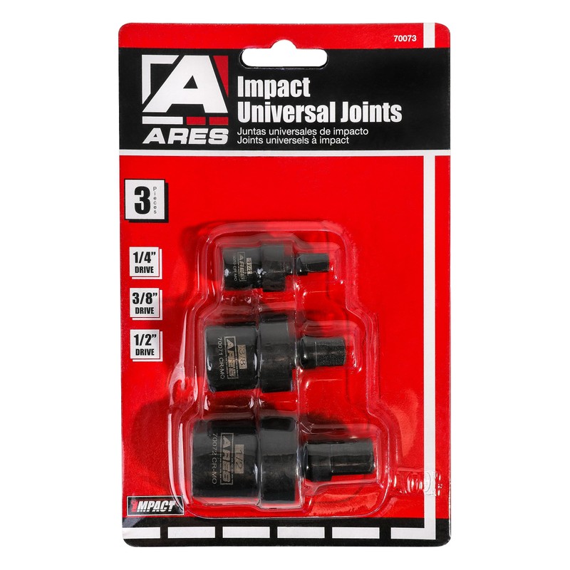 ARES 70073-3-Piece Impact Universal Joint Set - 1/4-Inch, 3/8-Inch and 1/2-Inch Drive Chrome Moly U Joint Sockets Access Hard to Reach Fasteners