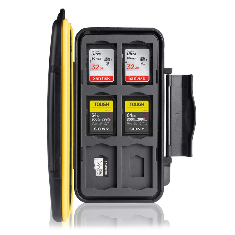 - ✅ This case is perfect for safely storing up to 12 SD cards and up to 12 MicroSD cards. The case is made of impact-resistant polycarbonate plastic. It has a shock-absorbing rubber insert in the lower part and in the lid flap with precise cut-outs for 6 SD cards and 6 MicroSD cards.