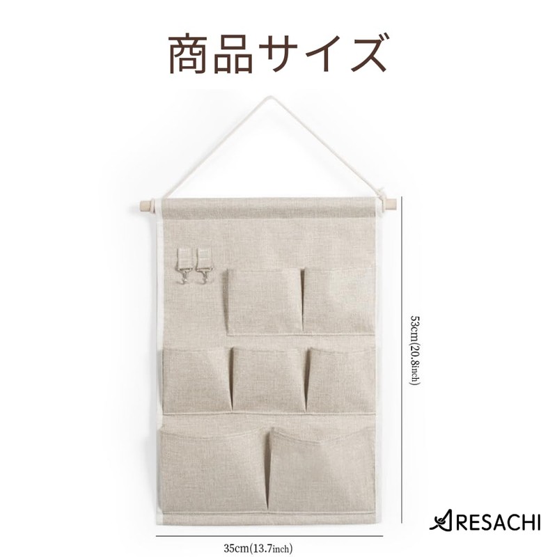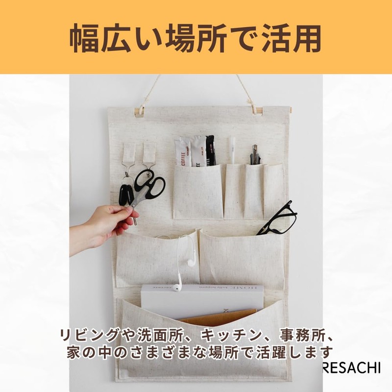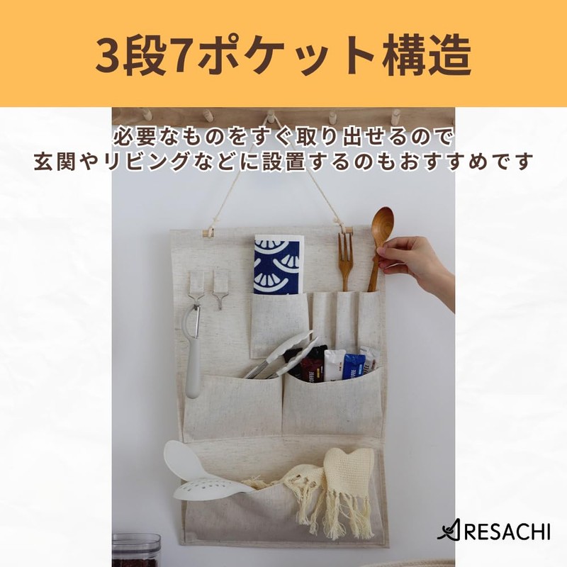 ARESACHI ウォールポケット 壁掛け収納 吊り下げ 3段 7ポケット小物収納 玄関 郵便物 手紙 オフホワイト