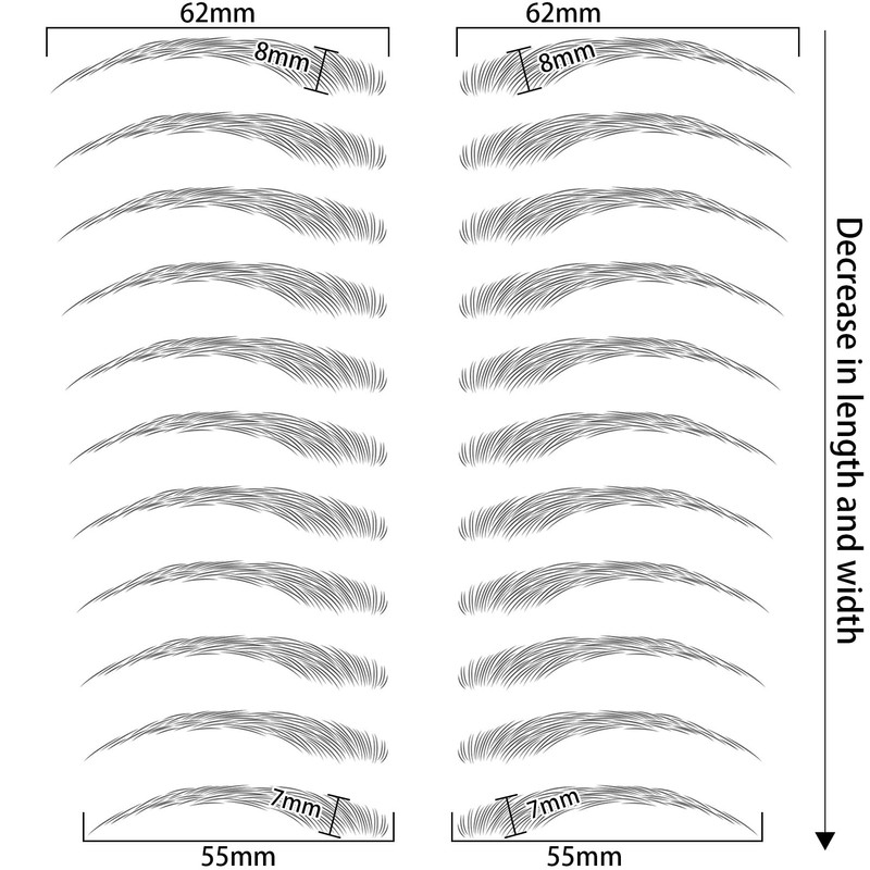 - Tattoo Eyebrows 66 Pairs --- one package includes 6 sheets eyebrow stickers, one sheet has 11 pairs eyebrows. You can find your favorite eyebrow shape size from our products, complete the suitable eyebrow shape. Suitable for women and girls.