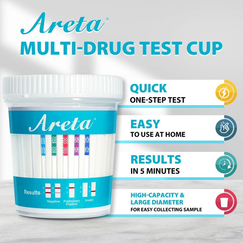 Areta Areta Home Multidrug Test Cup: Urine Testing Kit Comprehensive Multi-Drug Screening 14 Panel Rapid Screen Urinary Cups ACDOA-1144 15 Pack