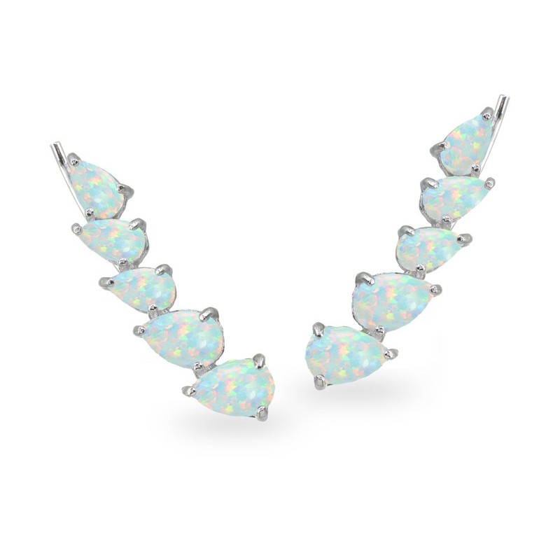 - arete escaladores para mujer: usa estos elegantes aretes para mejorar tu atuendo diurno y nocturno. Sencillos y elegantes, estos impresionantes aretes de oruga para mujeres y adolescentes cuentan con piedras preciosas de ópalo blanco sintéticas de corte pera, en un entorno curvado pulido.