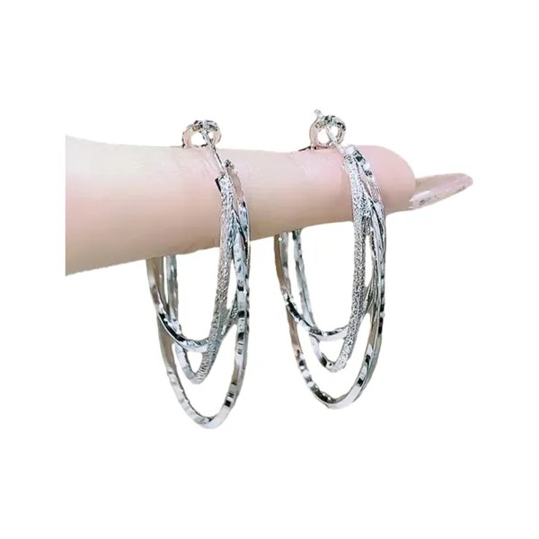 Aretes Arracadas De Aro Para Mujer Pendientes Grandes Plateados Chapados En Oro Blanco De 18k Colgantes Redondo Triple Arete Con Texturizado Regalo Dama