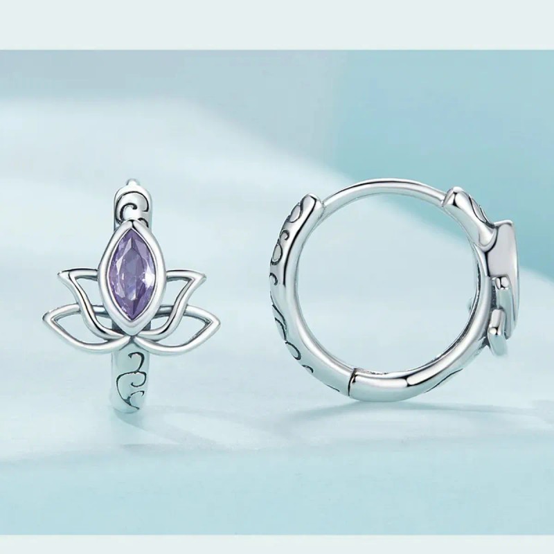 Aretes Arracadas Huggies Flor De Loto 100% Plata S925