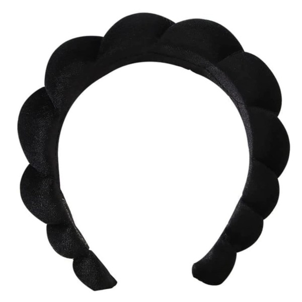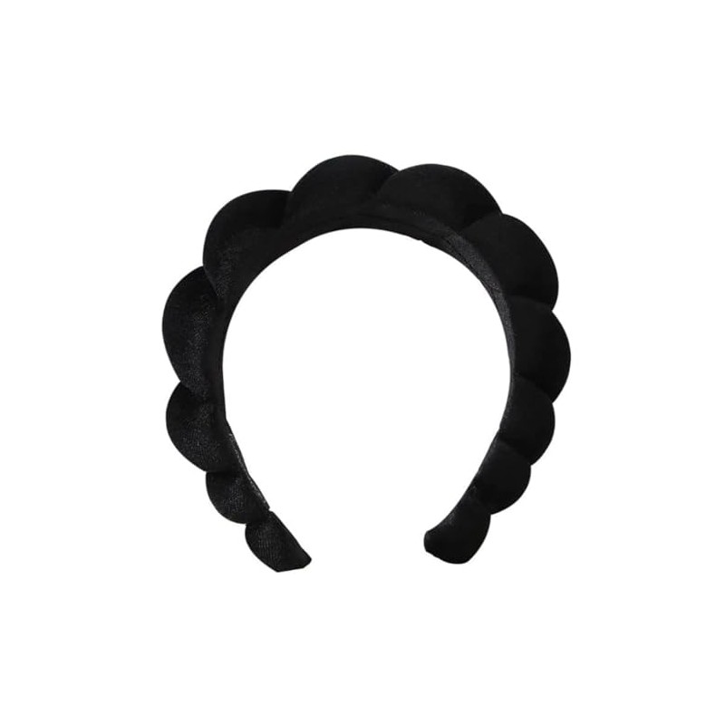 Aretro Cloud Shaped Soft Padded Non Slip Head Band Plush Wide Brimmed Makeup Band terry Cloth Soft (Black)